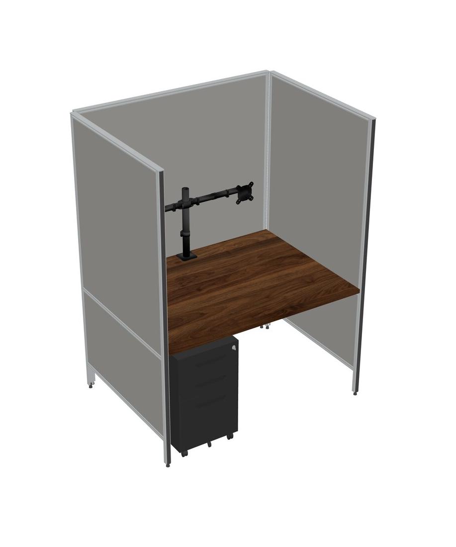 Système De Panneaux Flexibles En Noyer Columbia Pour 1 Personne + Tiroirs Mobiles En Métal + Bras Pour écran (double Bras)