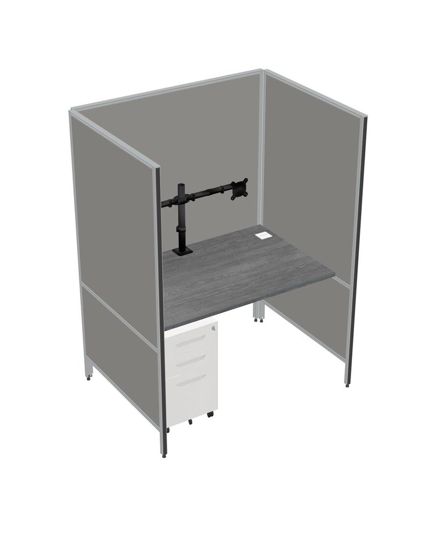 Système De Panneaux Flexibles Gris Pour 1 Tiroir Mobile En Métal Et Bras De Moniteur (double Bras)