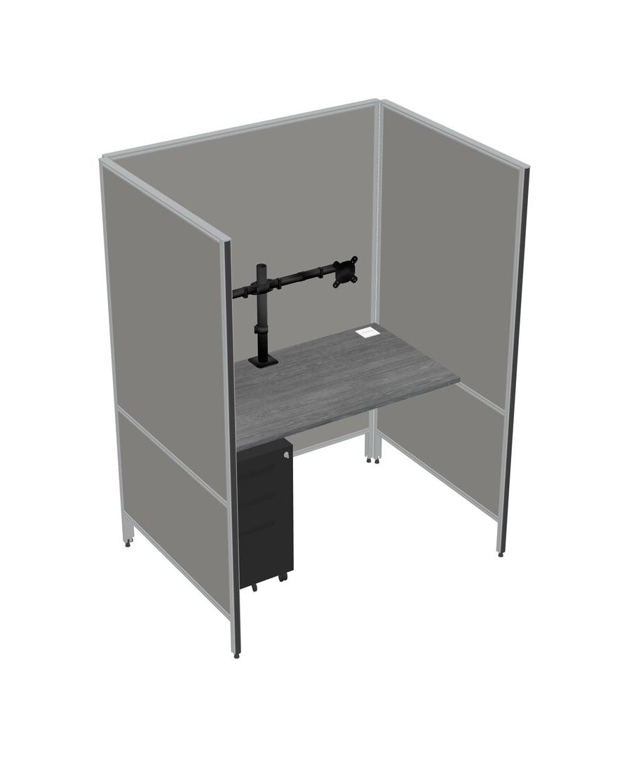 Système De Panneaux Flexibles Gris Pour 1 Tiroir Mobile En Métal Et Bras De Moniteur (double Bras)