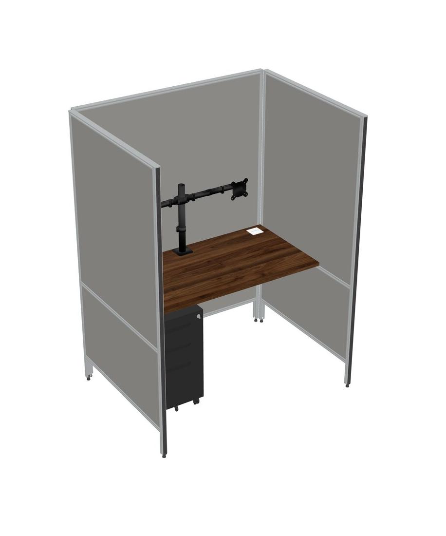 Système De Panneaux Flexibles En Noyer Columbia Pour 1 Personne + Tiroirs Mobiles En Métal + Bras Pour écran (double Bras)