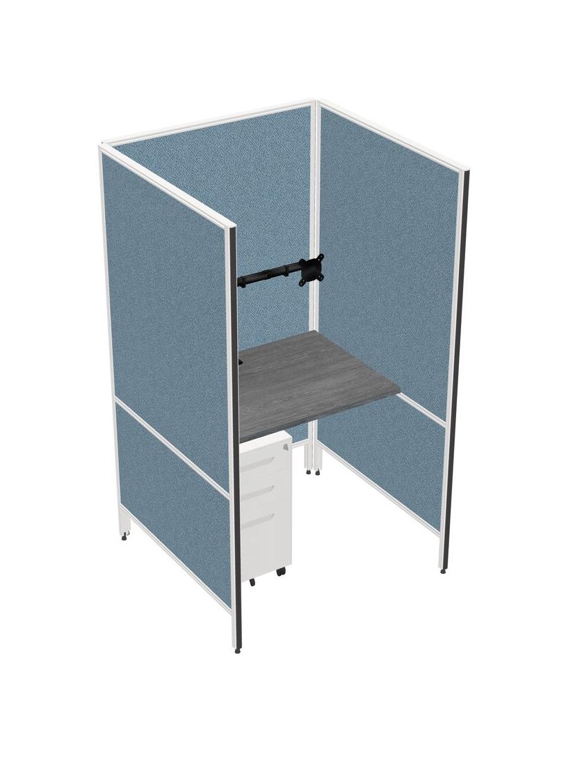 Système De Panneaux Flexibles Gris Pour 1 Tiroir Mobile En Métal Et Bras De Moniteur (double Bras)