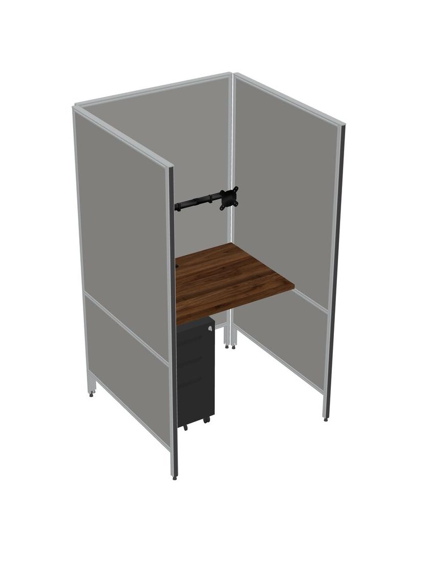 Système De Panneaux Flexibles En Noyer Columbia Pour 1 Personne + Tiroirs Mobiles En Métal + Bras Pour écran (double Bras)