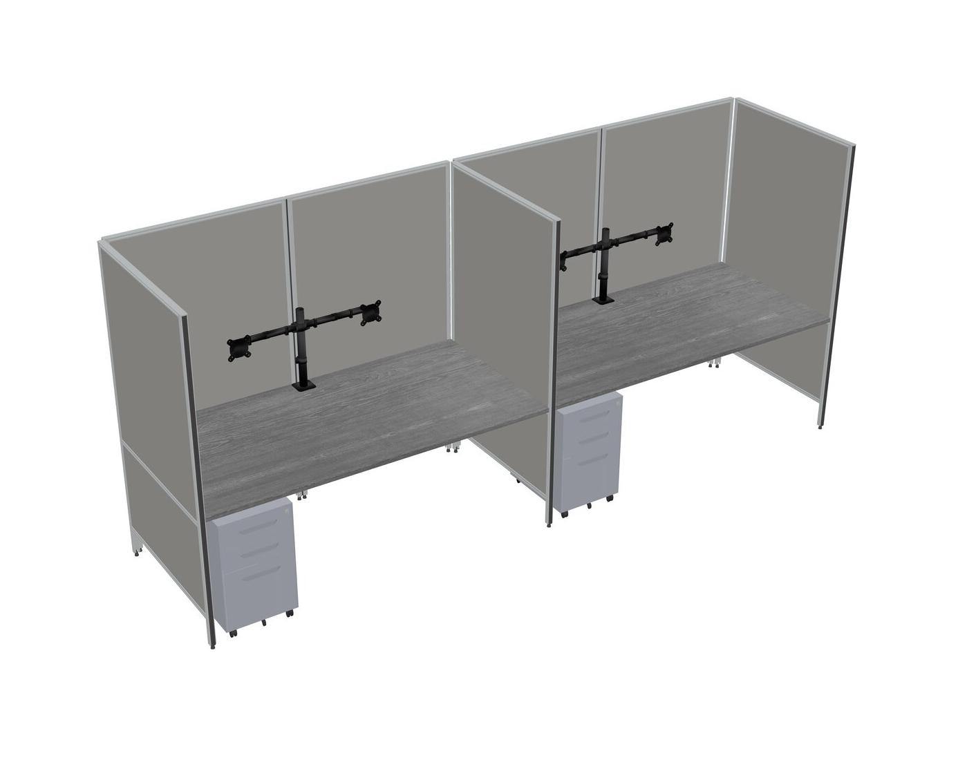 Système De Panneaux Flexibles Gris Pour 2 Tiroirs Mobiles En Métal + Bras Pour écran (double Bras)
