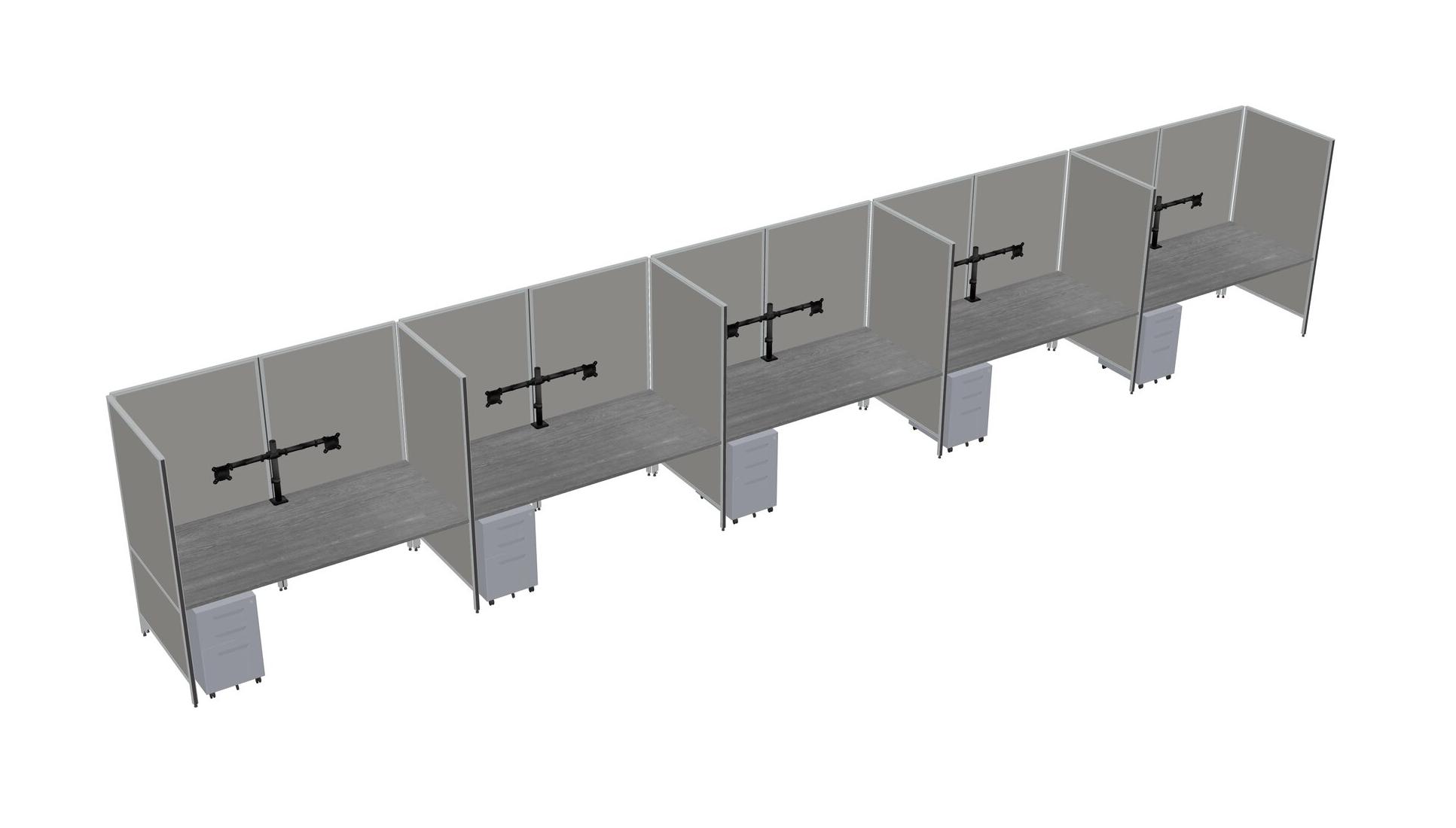 Système De Panneaux Flexibles Gris Pour 5 Tiroirs Mobiles Métalliques + Bras Pour écran (double Bras)