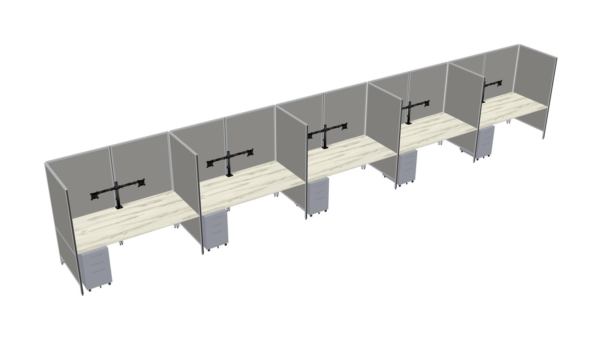 Système De Panneaux Flexibles Heinne Holz Pour 5 Tiroirs Mobiles Métalliques + Bras Pour écran (double Bras)