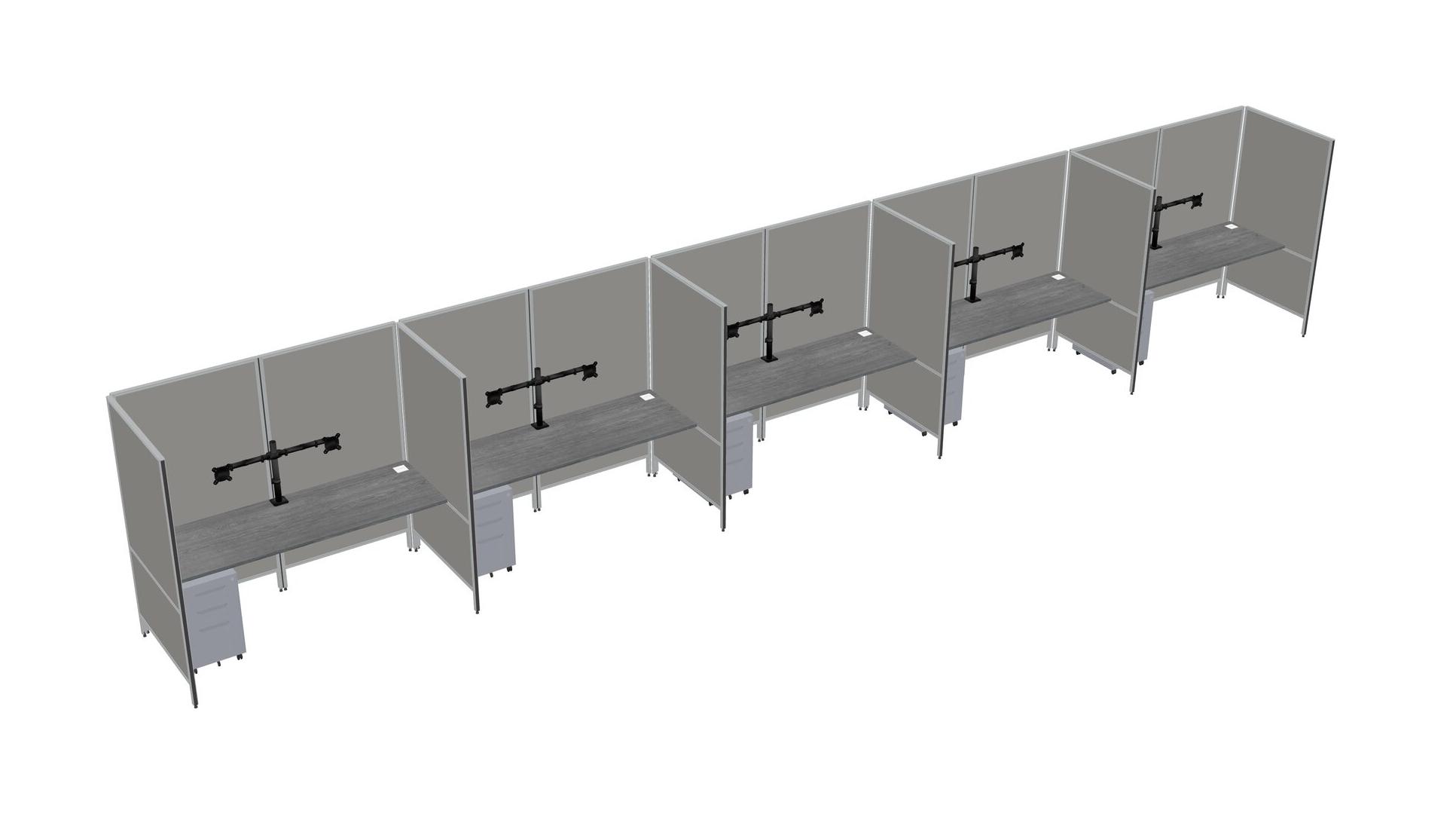 Système De Panneaux Flexibles Gris Pour 5 Tiroirs Mobiles Métalliques + Bras Pour écran (double Bras)