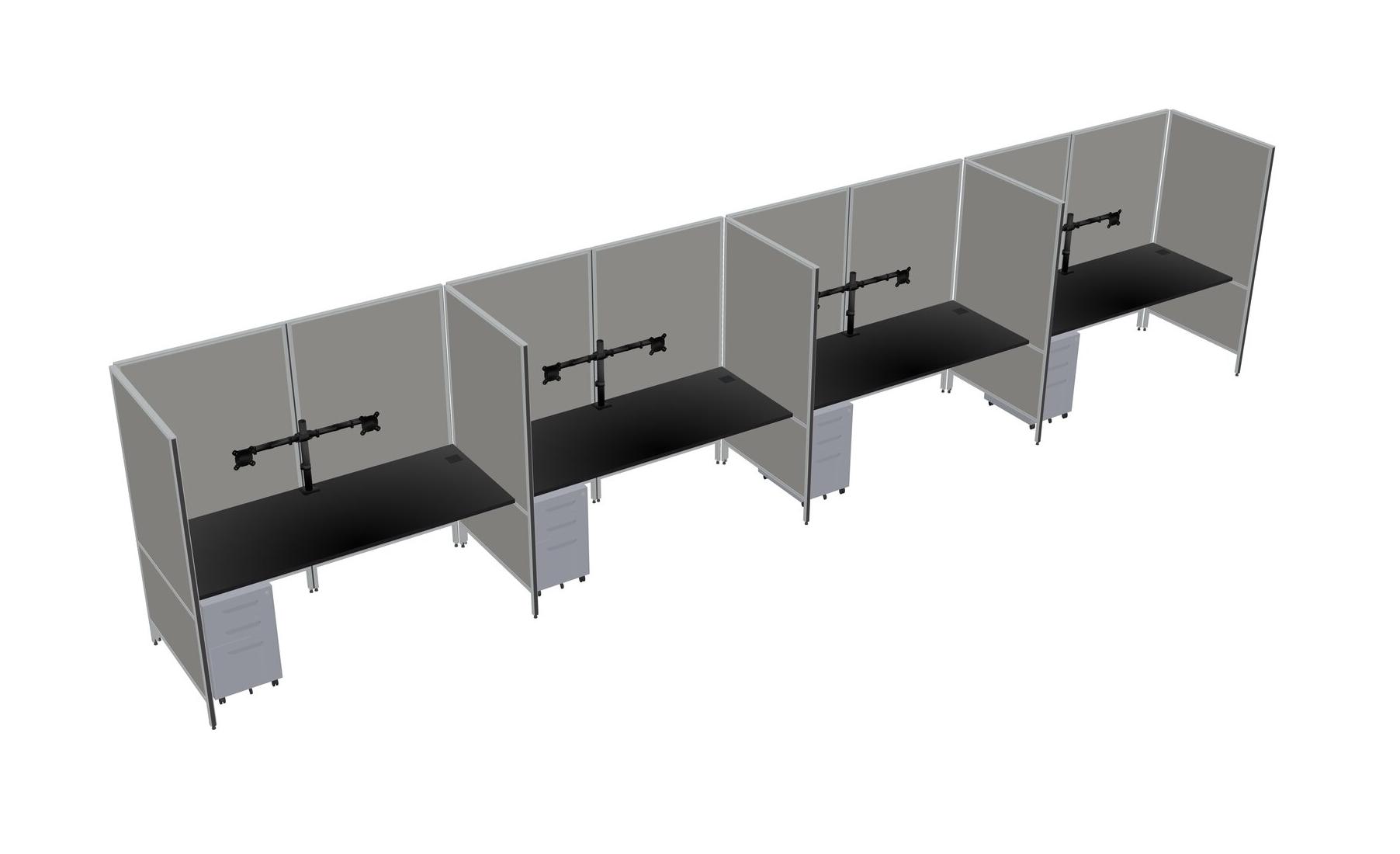 Système De Panneaux Flexibles Noirs Pour 4 Tiroirs Mobiles En Métal + Bras Pour écran (double Bras)