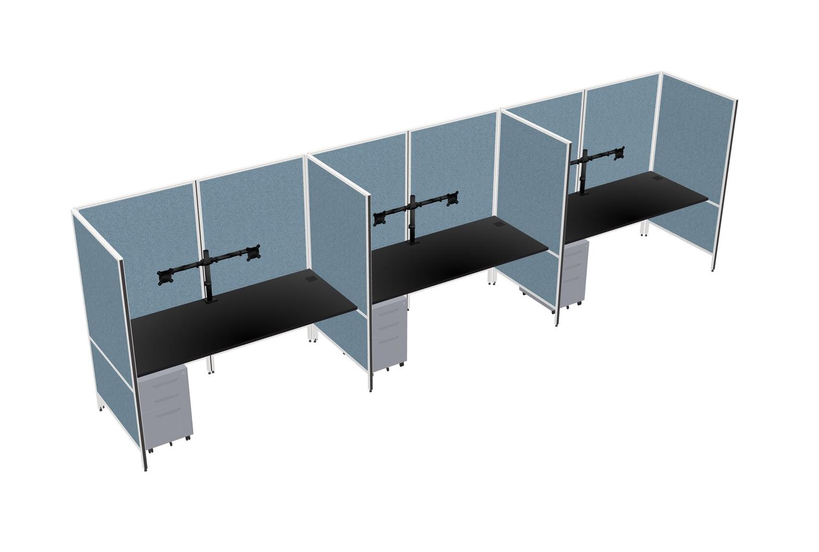 Système De Panneaux Flexibles Noirs Pour 3 Tiroirs Mobiles En Métal + Bras Pour écran (double Bras)