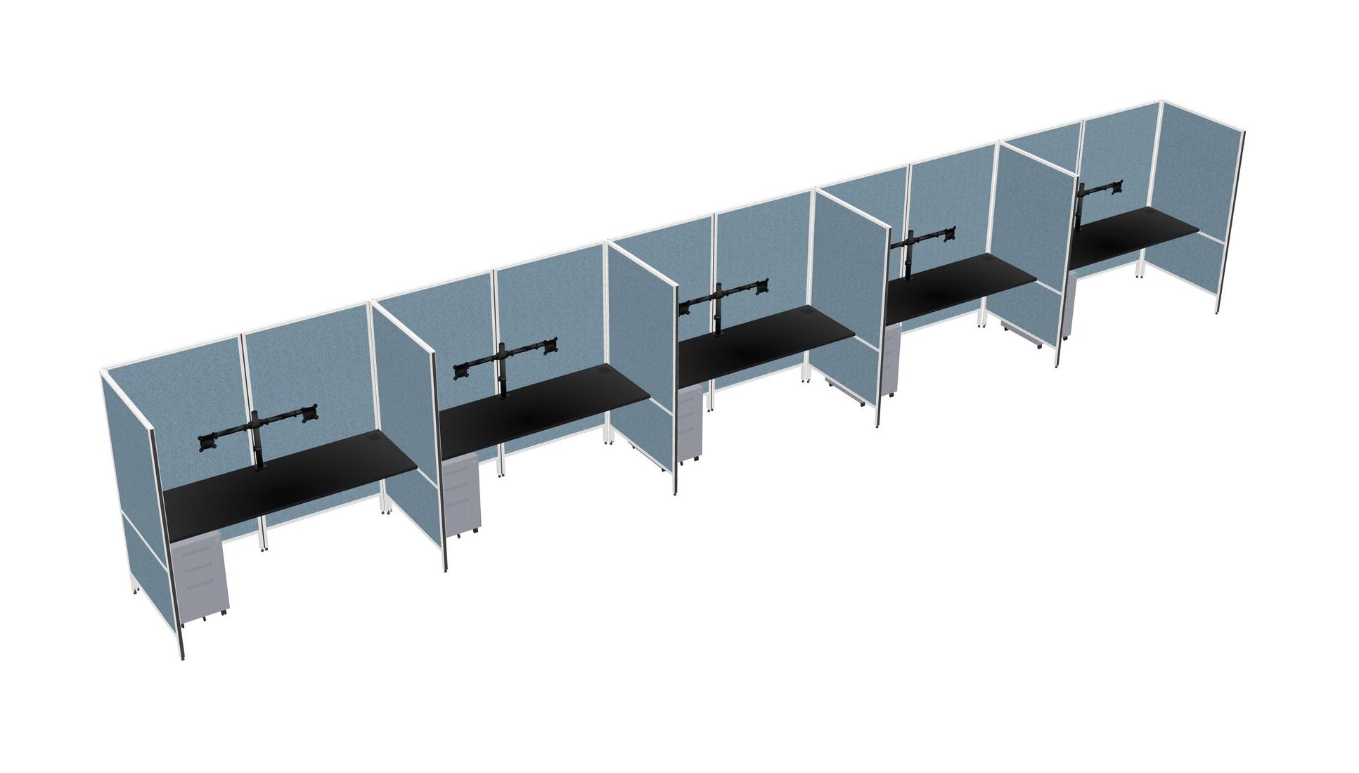 Système De Panneaux Flexibles Noirs Pour 5 Tiroirs Mobiles En Métal + Bras Pour écran (double Bras)