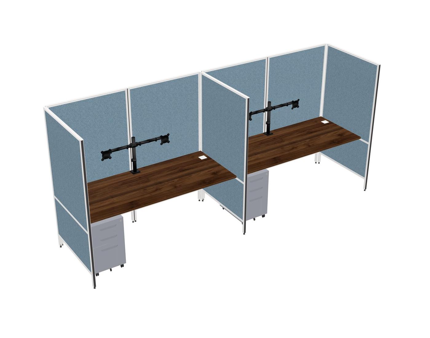 Système De Panneaux Flexibles En Noyer Columbia Pour 2 Tiroirs Mobiles En Métal + Bras Pour écran (double Bras)