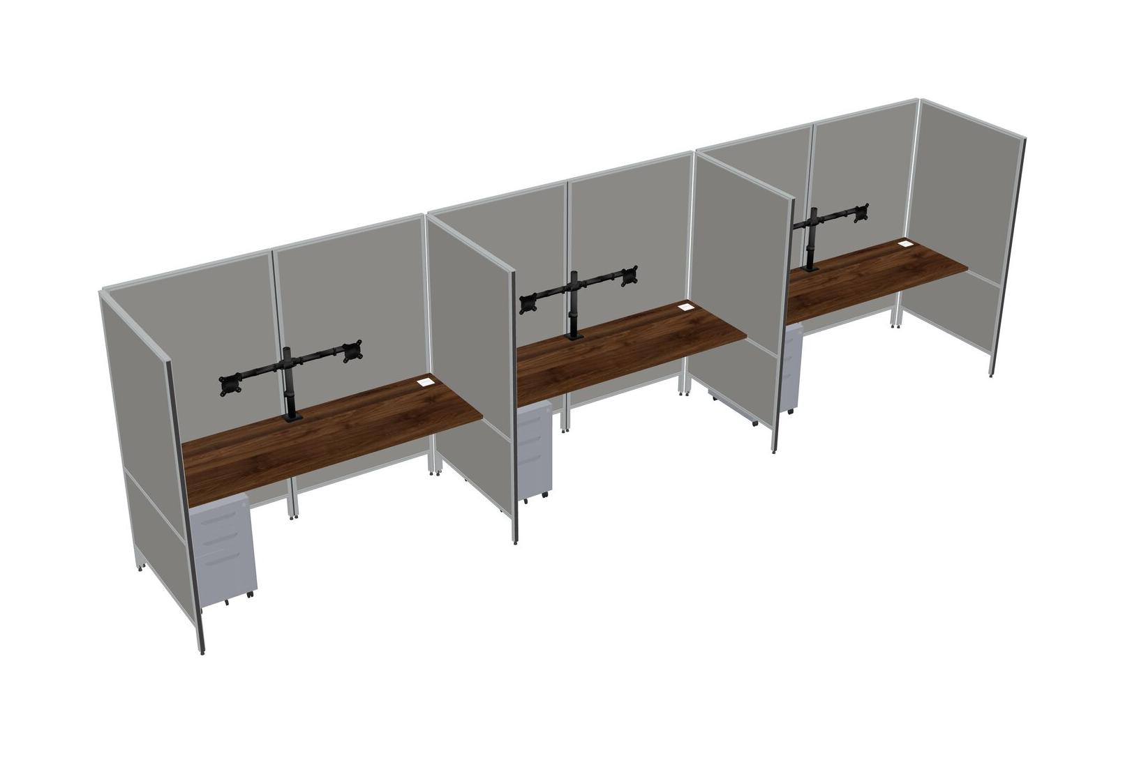 Système De Panneaux Flexibles En Noyer Columbia Pour 3 Tiroirs Mobiles En Métal + Bras Pour écran (double Bras)