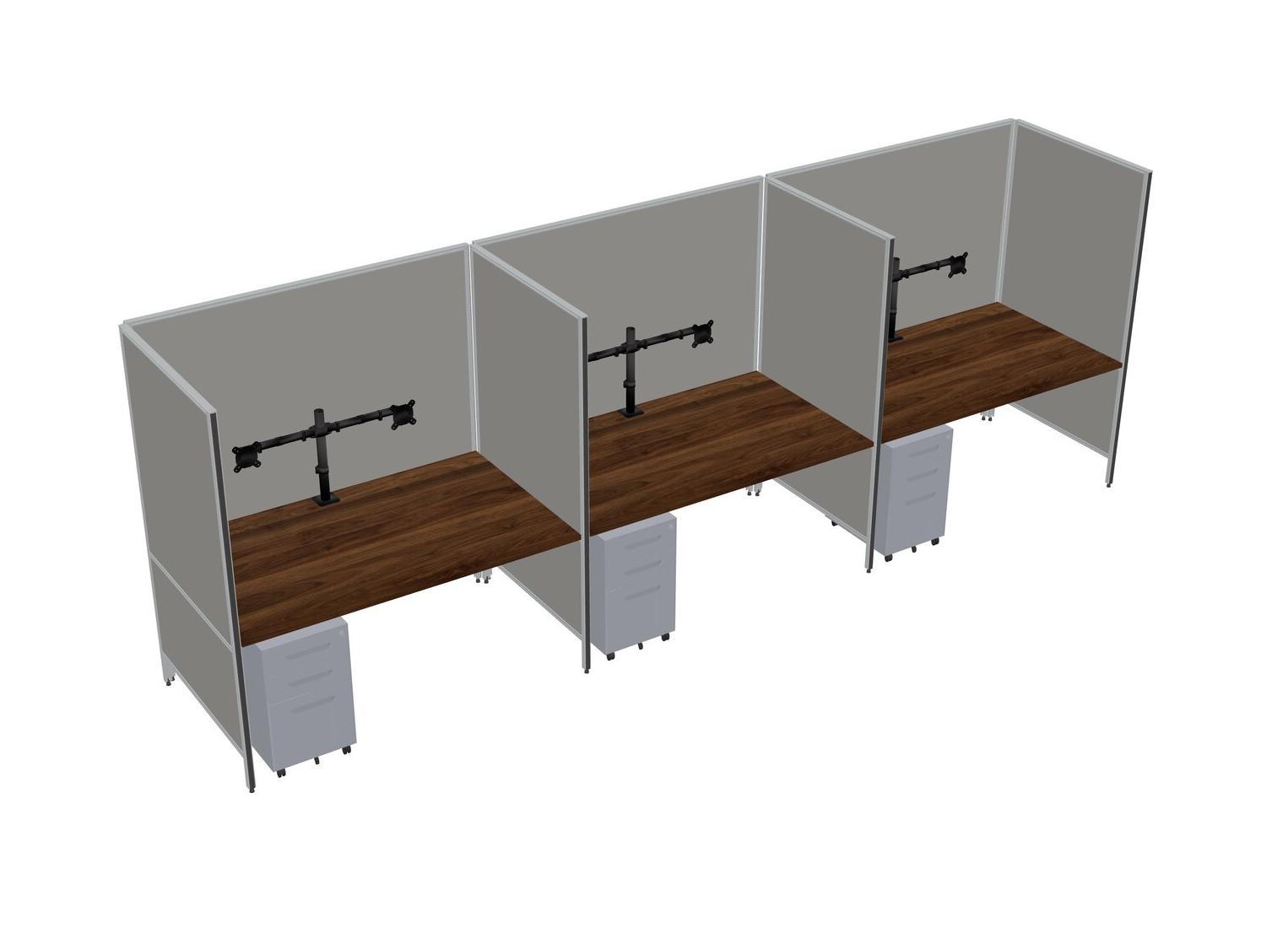 Système De Panneaux Flexibles En Noyer Columbia Pour 3 Tiroirs Mobiles En Métal + Bras Pour écran (double Bras)