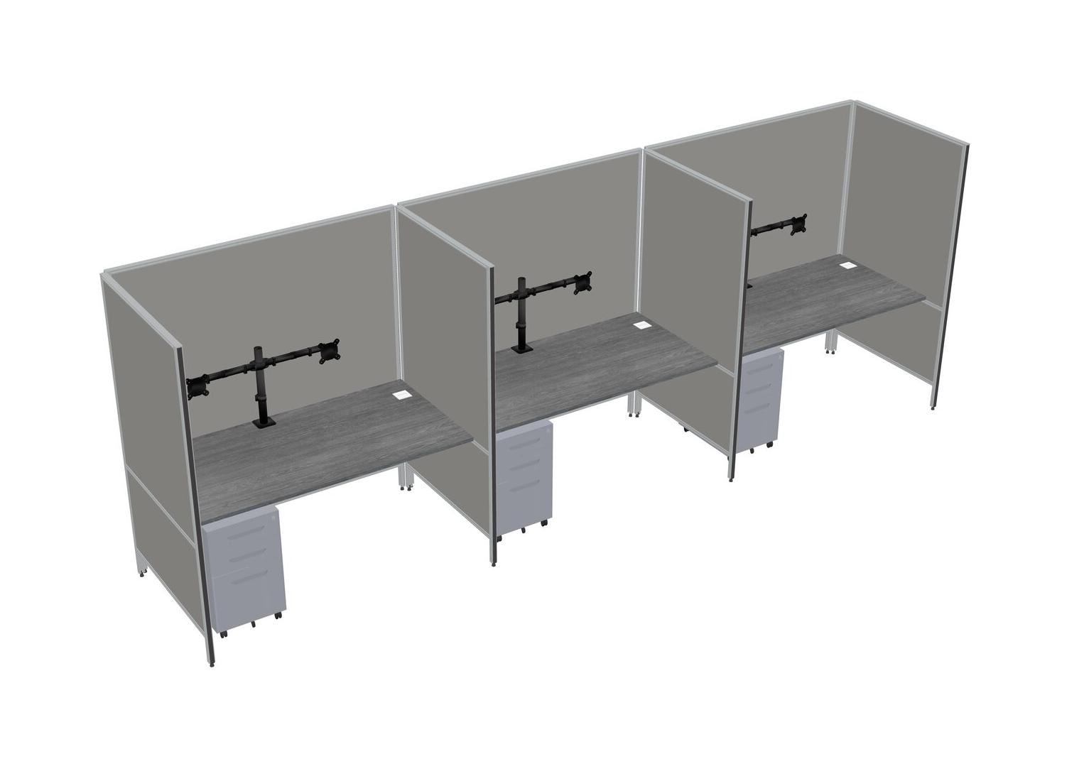 Système De Panneaux Flexibles Gris Pour 3 Tiroirs Mobiles En Métal + Bras Pour écran (double Bras)