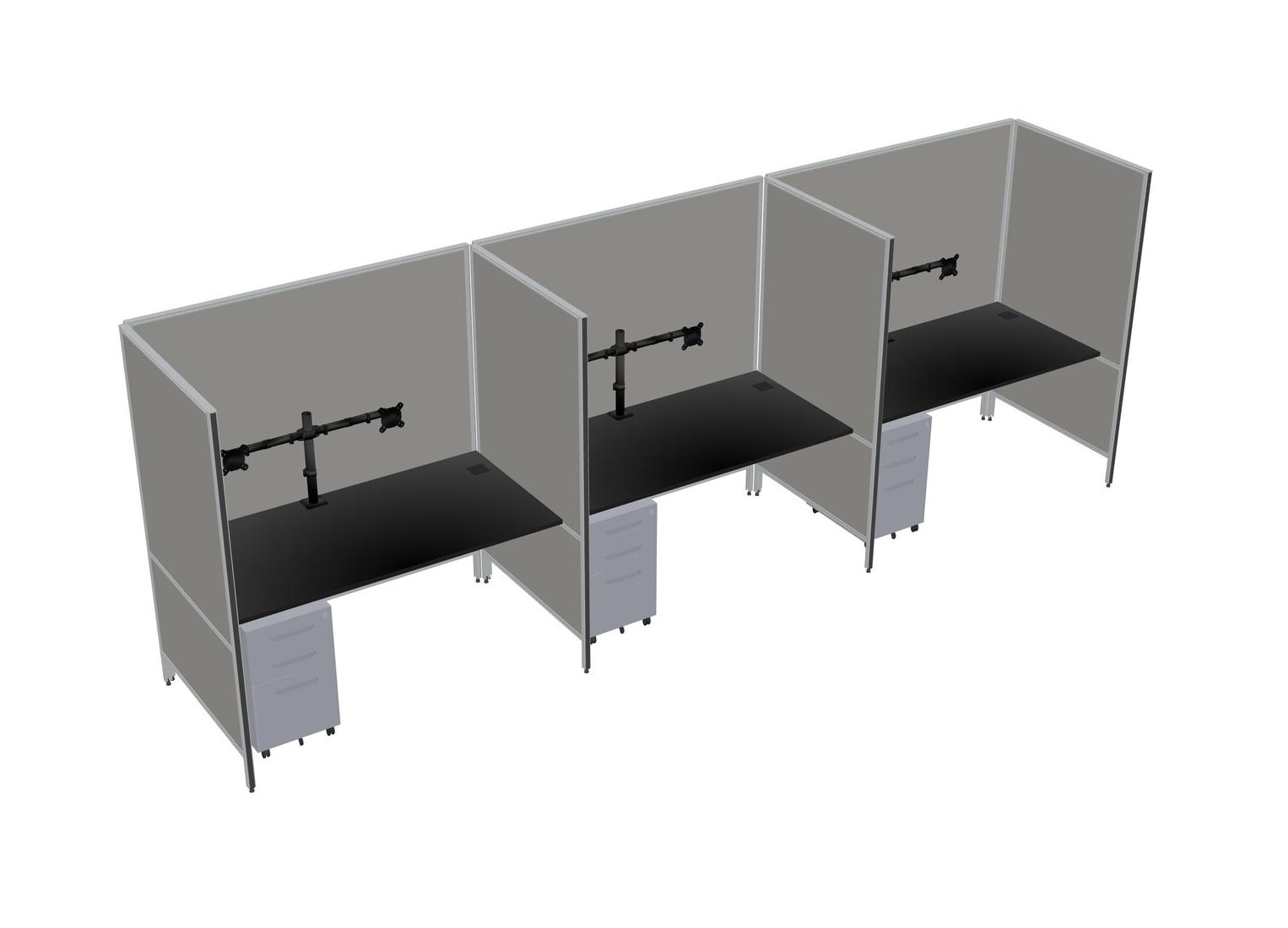Système De Panneaux Flexibles Noirs Pour 3 Tiroirs Mobiles En Métal + Bras Pour écran (double Bras)