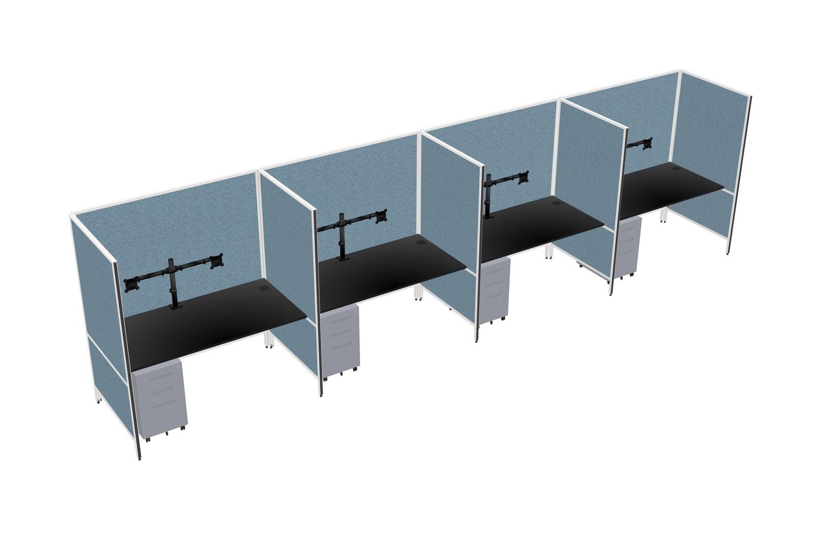 Système De Panneaux Flexibles Noirs Pour 4 Tiroirs Mobiles En Métal + Bras Pour écran (double Bras)