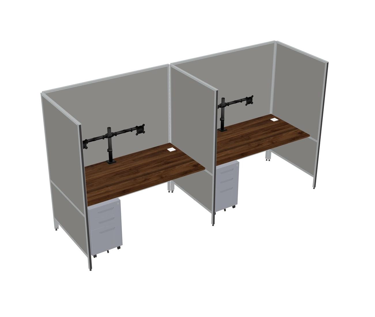 Système De Panneaux Flexibles En Noyer Columbia Pour 2 Tiroirs Mobiles En Métal + Bras Pour écran (double Bras)