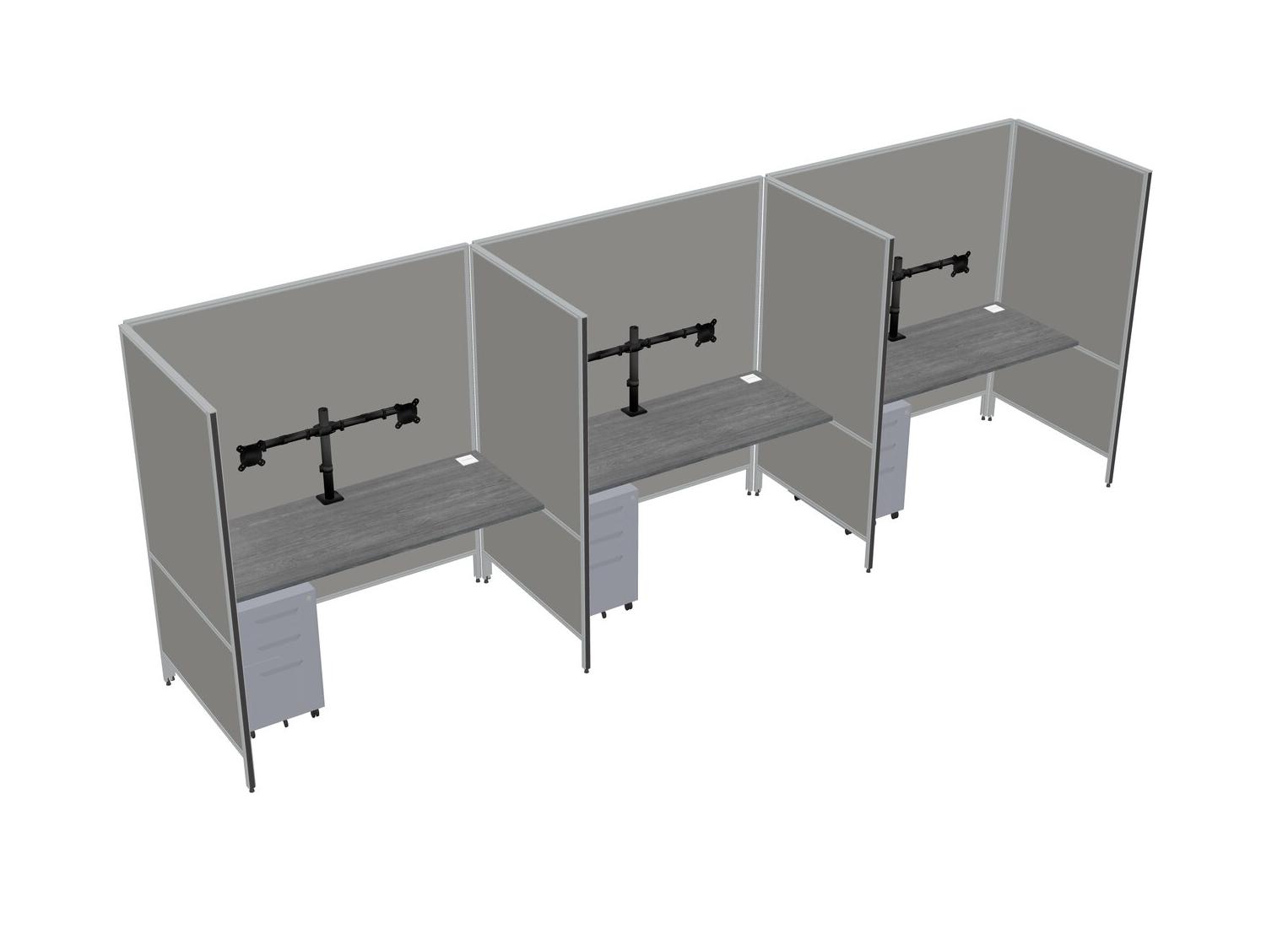 Système De Panneaux Flexibles Gris Pour 3 Tiroirs Mobiles En Métal + Bras Pour écran (double Bras)