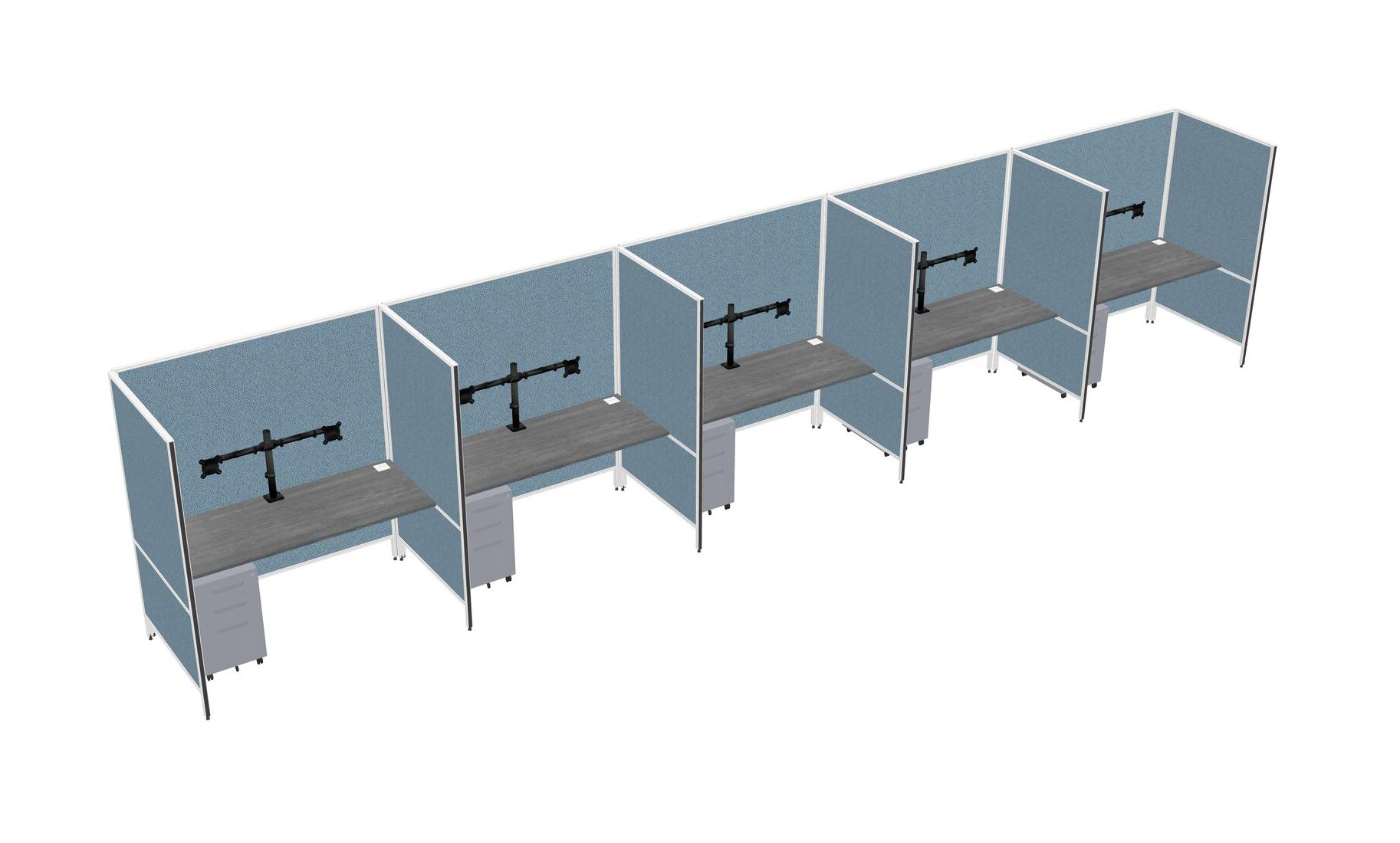 Système De Panneaux Flexibles Gris Pour 5 Tiroirs Mobiles Métalliques + Bras Pour écran (double Bras)