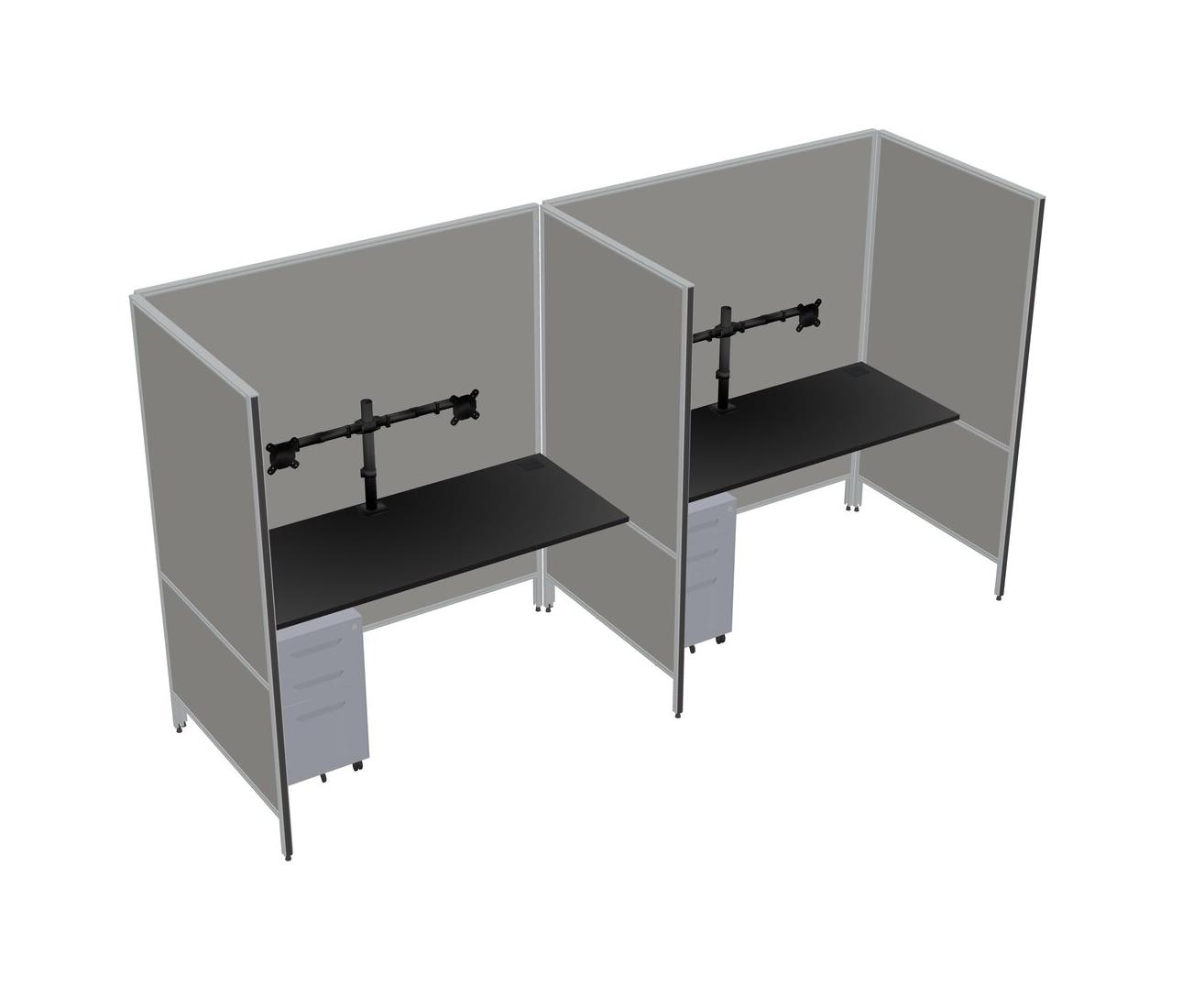 Système De Panneaux Flexibles Noirs Pour 2 Tiroirs Mobiles En Métal + Bras Pour écran (double Bras)