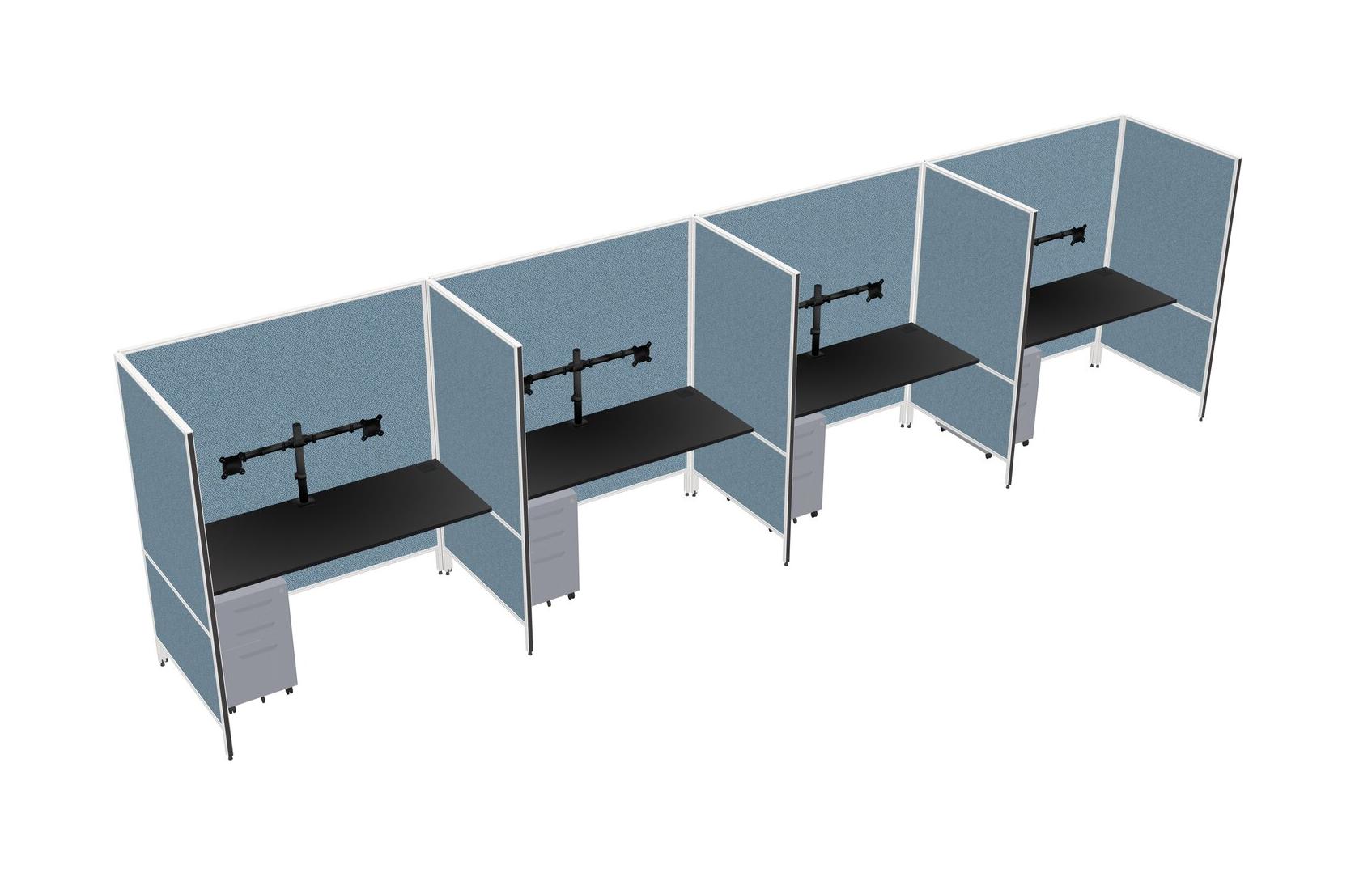 Système De Panneaux Flexibles Noirs Pour 4 Tiroirs Mobiles En Métal + Bras Pour écran (double Bras)