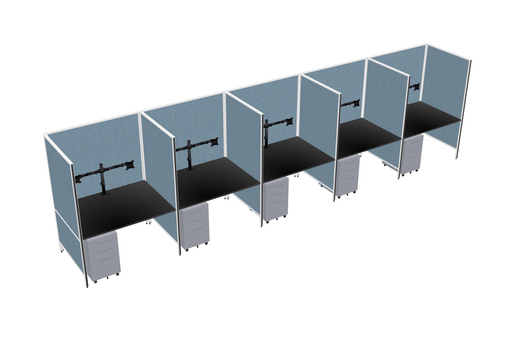 Système De Panneaux Flexibles Noirs Pour 5 Tiroirs Mobiles En Métal + Bras Pour écran (double Bras)