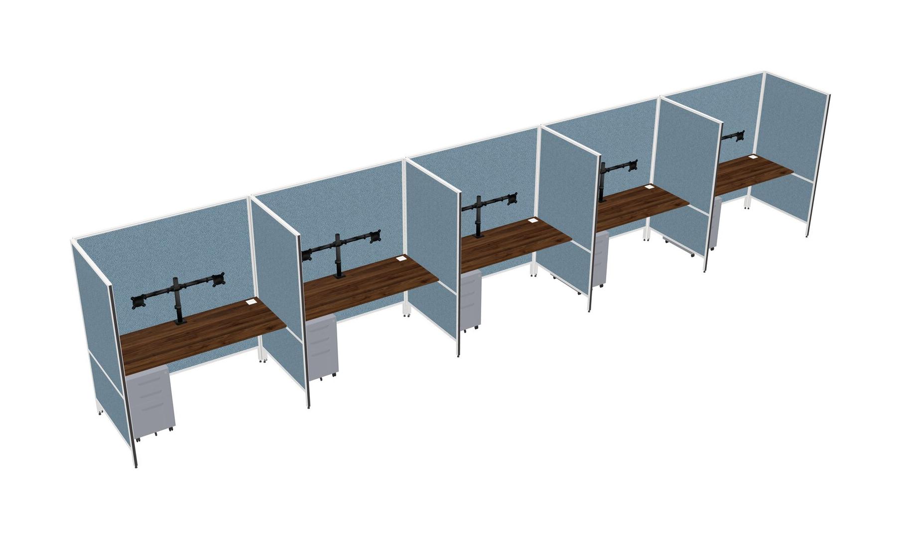 Système De Panneaux Flexibles En Noyer Columbia Pour 5 Tiroirs Mobiles En Métal + Bras Pour écran (double Bras)