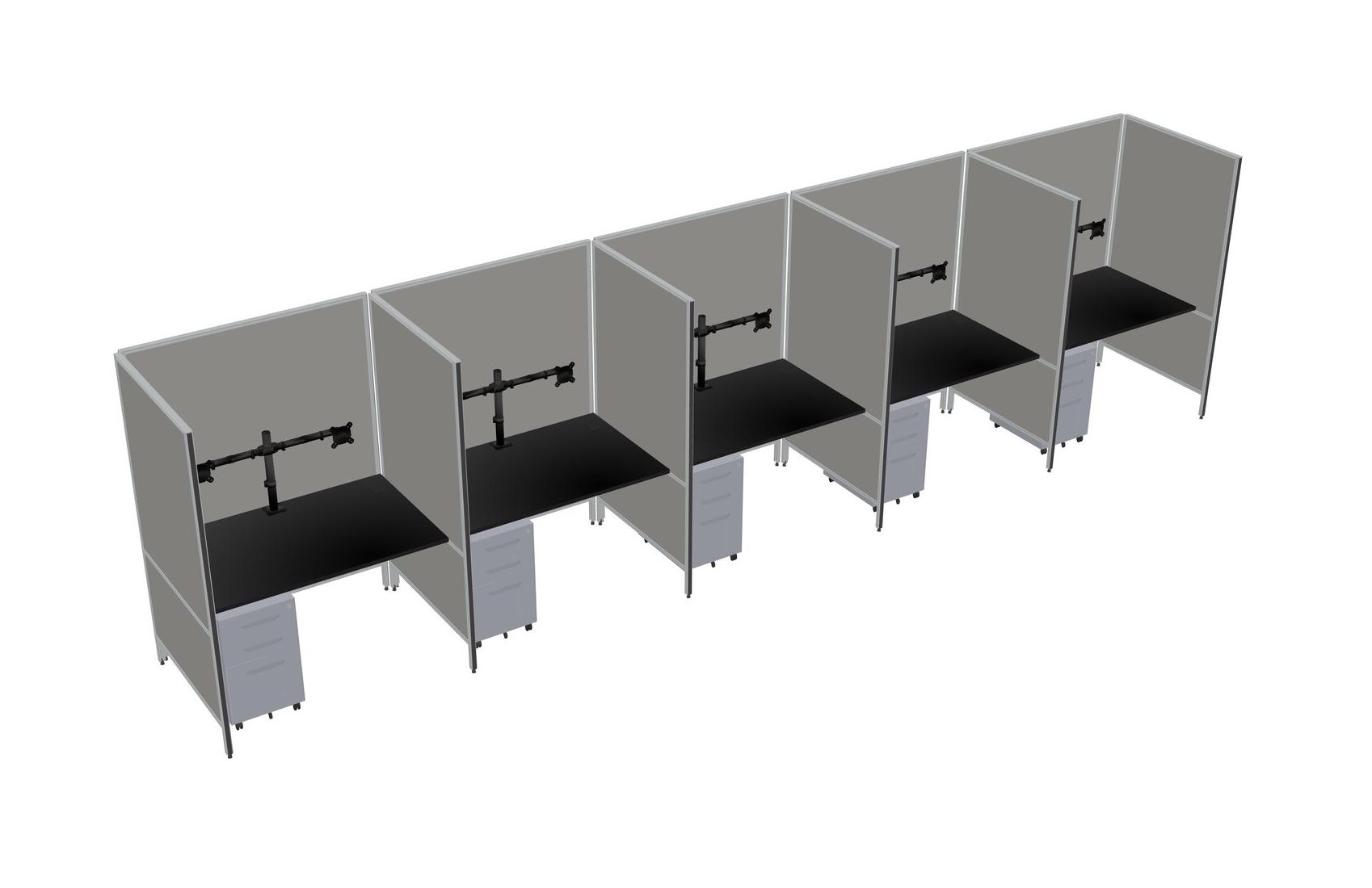 Système De Panneaux Flexibles Noirs Pour 5 Tiroirs Mobiles En Métal + Bras Pour écran (double Bras)