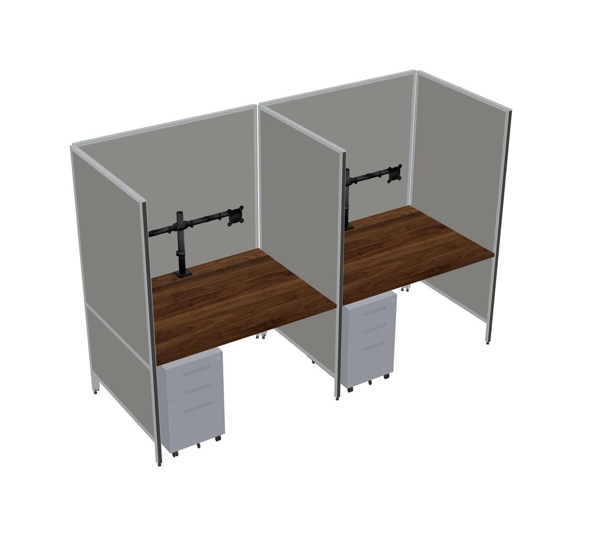 Système De Panneaux Flexibles En Noyer Columbia Pour 2 Tiroirs Mobiles En Métal + Bras Pour écran (double Bras)