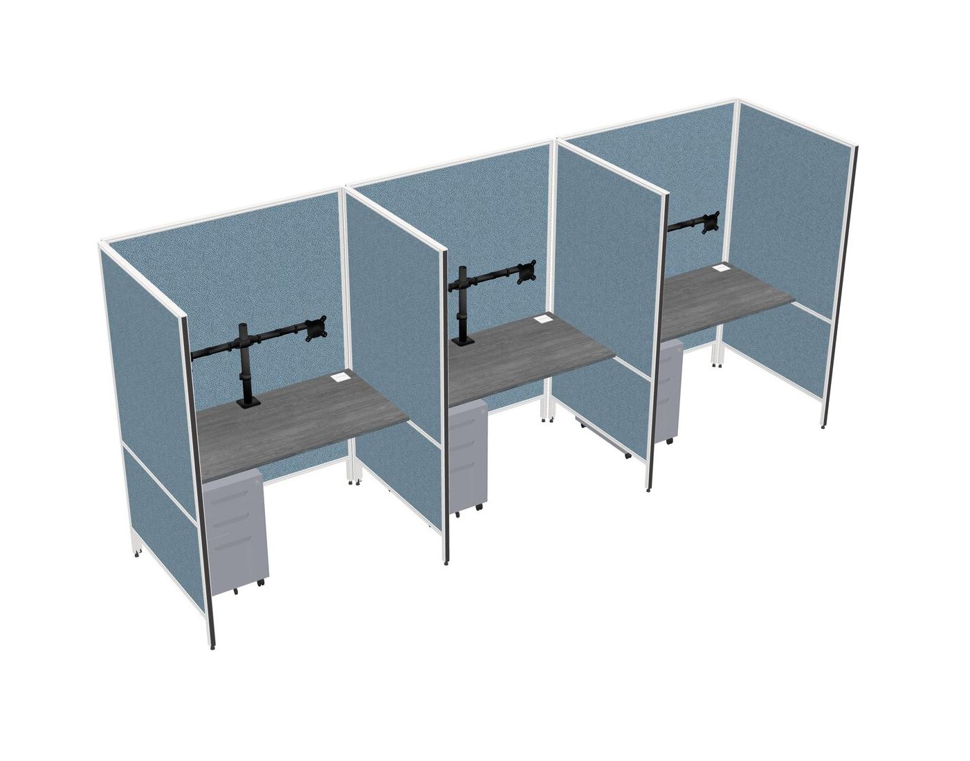 Système De Panneaux Flexibles Gris Pour 3 Tiroirs Mobiles En Métal + Bras Pour écran (double Bras)