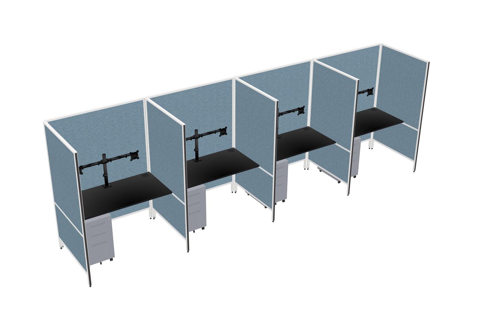 Système De Panneaux Flexibles Noirs Pour 4 Tiroirs Mobiles En Métal + Bras Pour écran (double Bras)