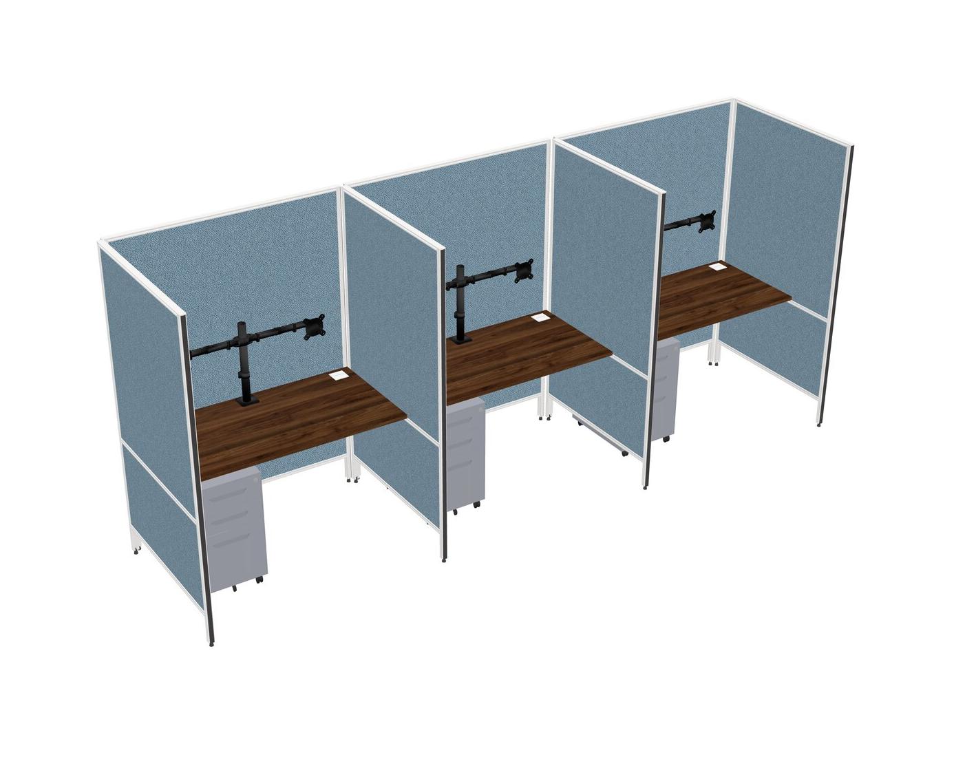 Système De Panneaux Flexibles En Noyer Columbia Pour 3 Tiroirs Mobiles En Métal + Bras Pour écran (double Bras)