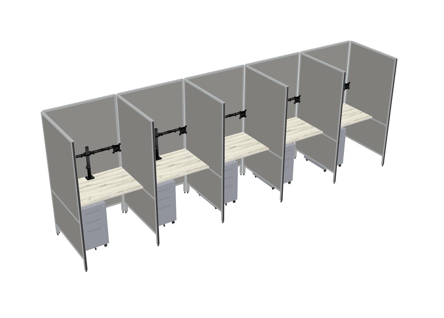 Système De Panneaux Flexibles Heinne Holz Pour 5 Tiroirs Mobiles Métalliques + Bras Pour écran (double Bras)
