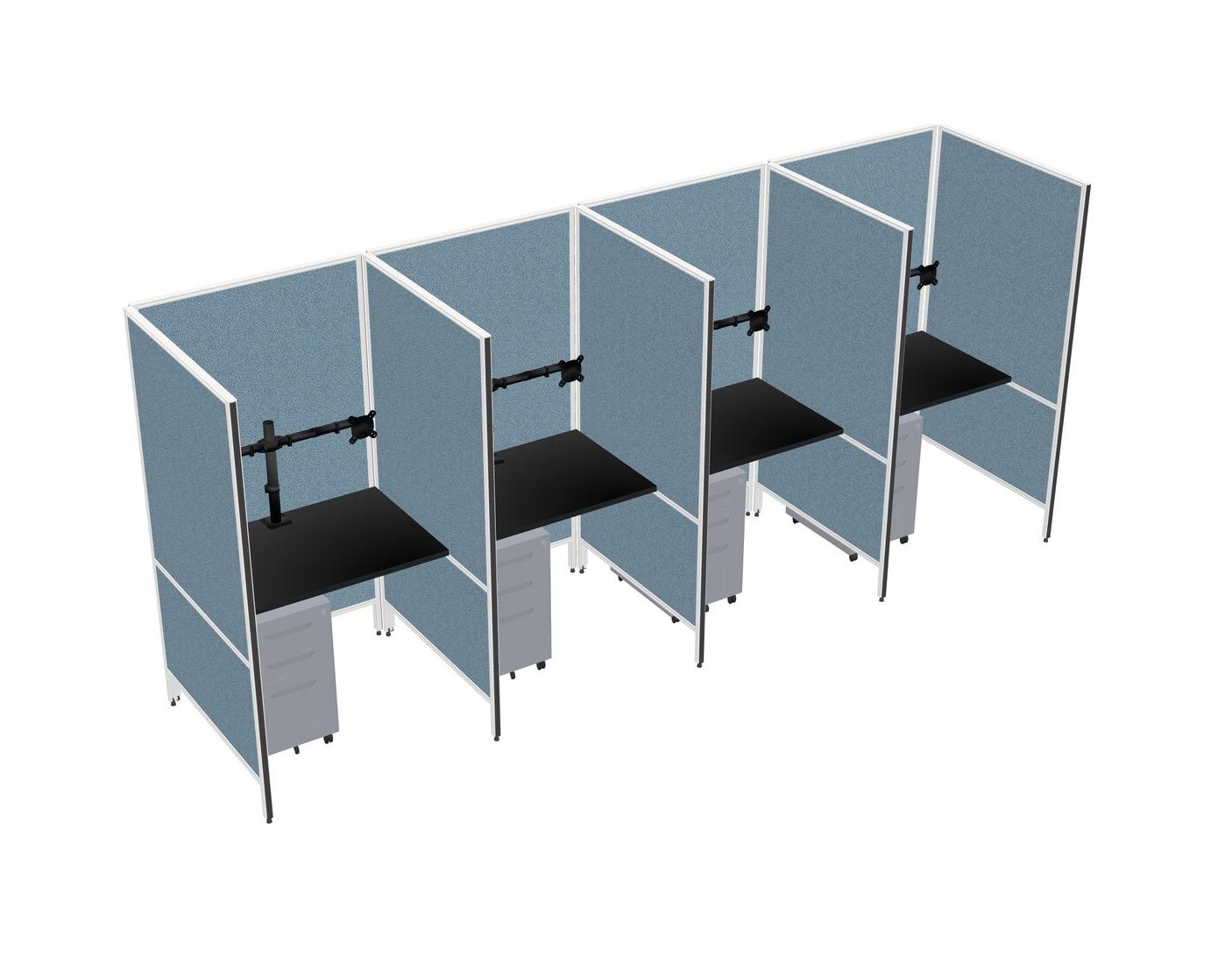 Système De Panneaux Flexibles Noirs Pour 4 Tiroirs Mobiles En Métal + Bras Pour écran (double Bras)
