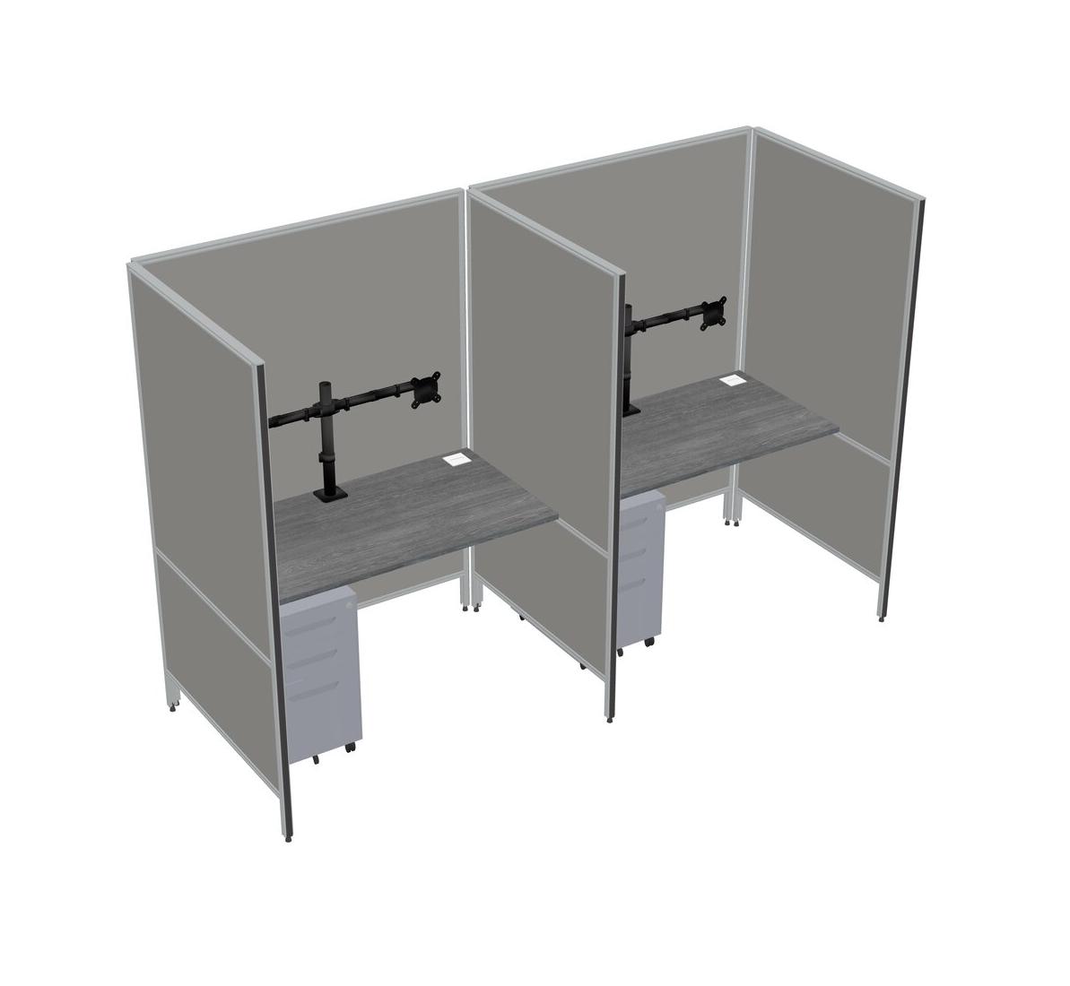 Système De Panneaux Flexibles Gris Pour 2 Tiroirs Mobiles En Métal + Bras Pour écran (double Bras)