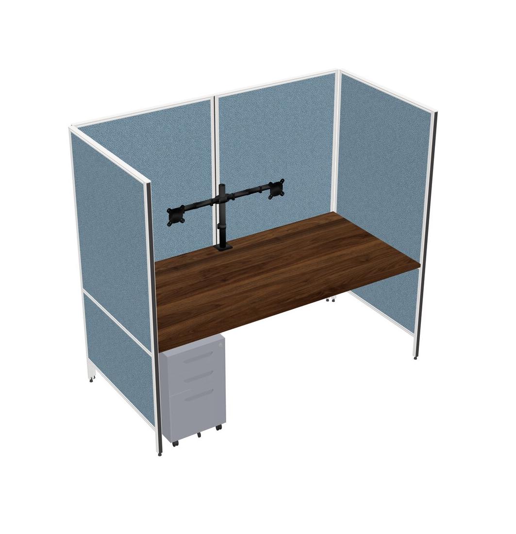 Système De Panneaux Flexibles En Noyer Columbia Pour 1 Personne + Tiroirs Mobiles En Métal + Bras Pour écran (double Bras)