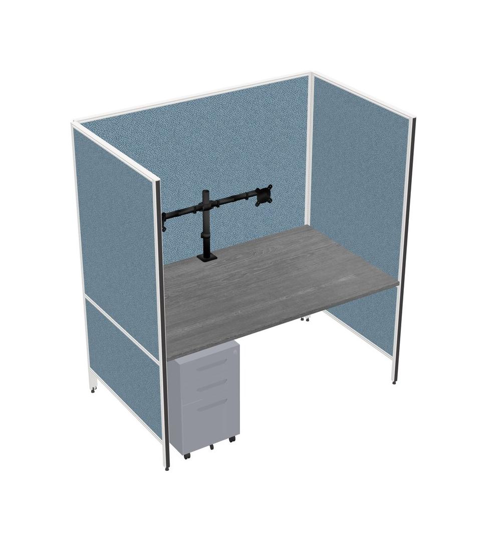 Système De Panneaux Flexibles Gris Pour 1 Tiroir Mobile En Métal Et Bras De Moniteur (double Bras)