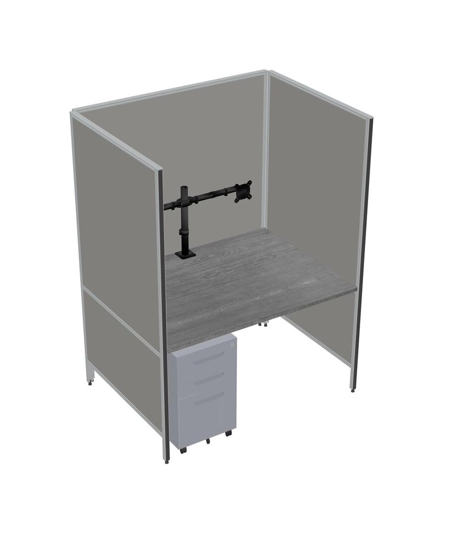 Système De Panneaux Flexibles Gris Pour 1 Tiroir Mobile En Métal Et Bras De Moniteur (double Bras)