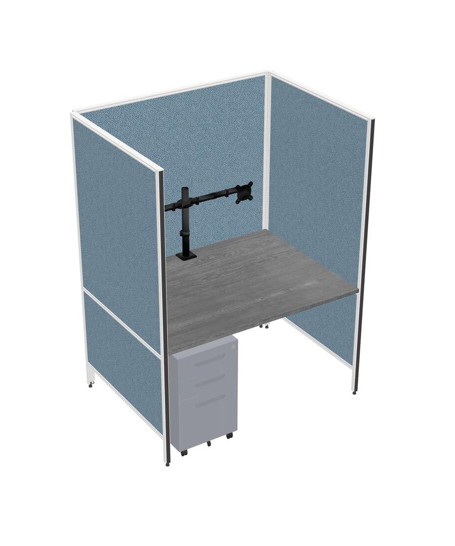 Système De Panneaux Flexibles Gris Pour 1 Tiroir Mobile En Métal Et Bras De Moniteur (double Bras)