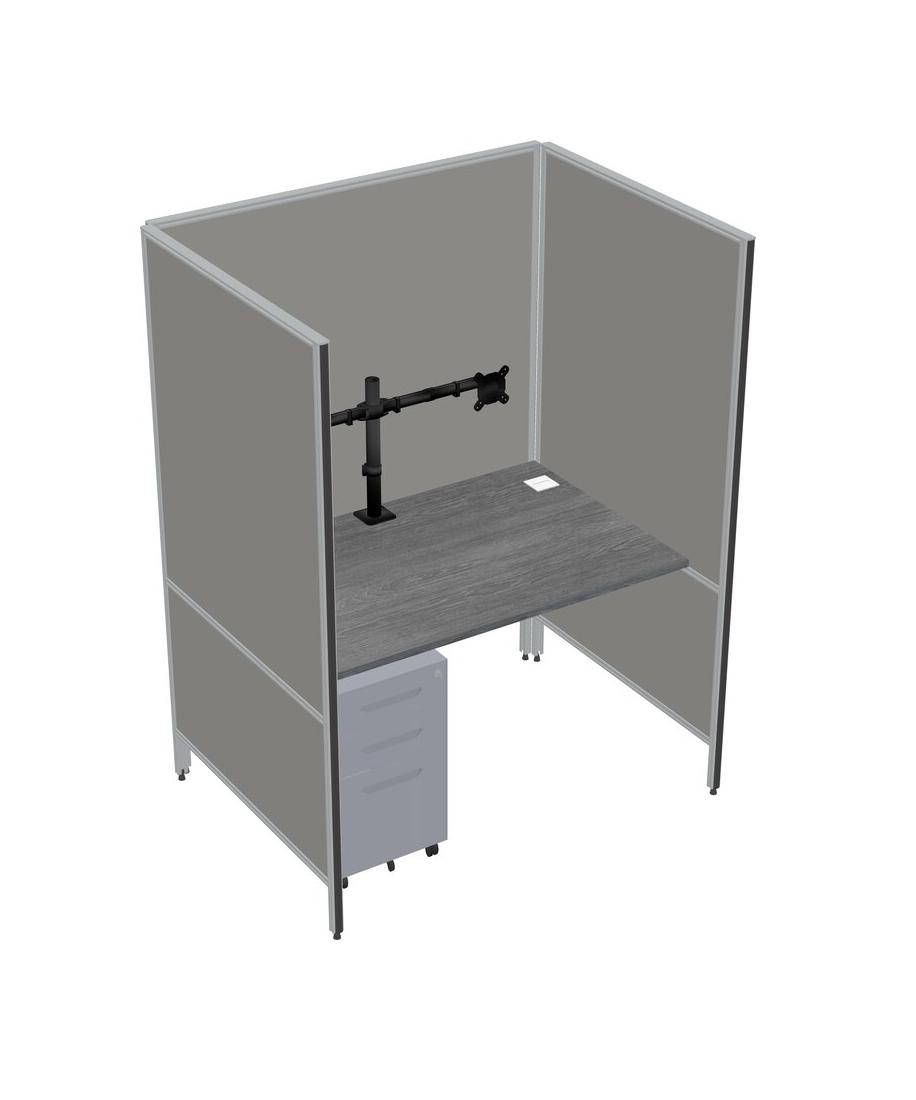 Système De Panneaux Flexibles Gris Pour 1 Tiroir Mobile En Métal Et Bras De Moniteur (double Bras)