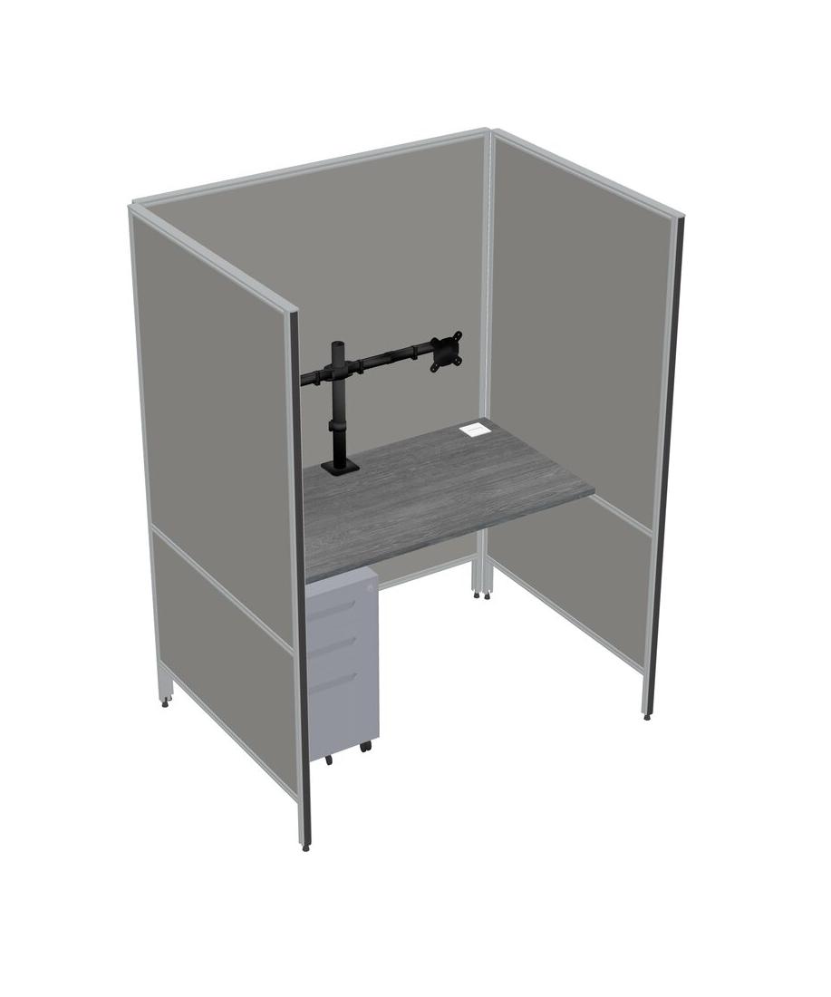 Système De Panneaux Flexibles Gris Pour 1 Tiroir Mobile En Métal Et Bras De Moniteur (double Bras)