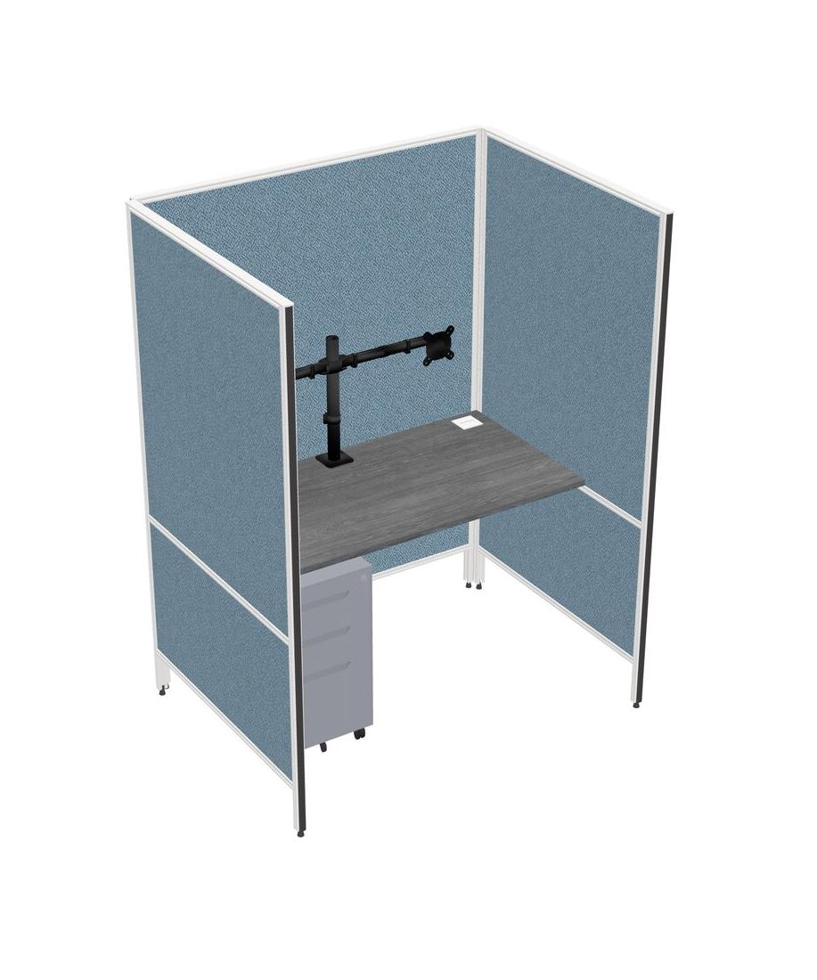 Système De Panneaux Flexibles Gris Pour 1 Tiroir Mobile En Métal Et Bras De Moniteur (double Bras)