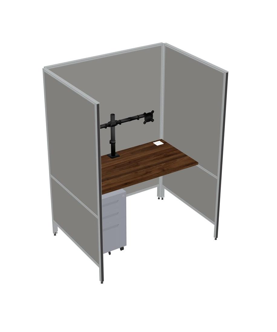 Système De Panneaux Flexibles En Noyer Columbia Pour 1 Personne + Tiroirs Mobiles En Métal + Bras Pour écran (double Bras)