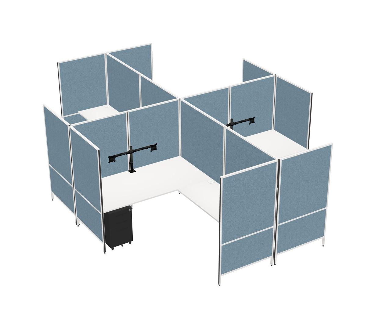 Système De Panneaux Modulaires Modernes Blancs En Forme De L + Tiroirs Mobiles En Métal + Bras Pour écran (double Bras)