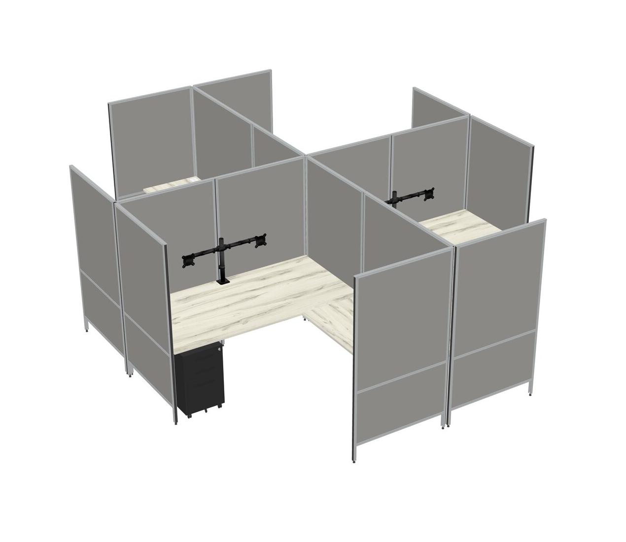Système De Panneaux Modulaires Modernes En Forme De L Heinne Holz + Tiroirs Mobiles En Métal + Bras Pour écran (double Bras)