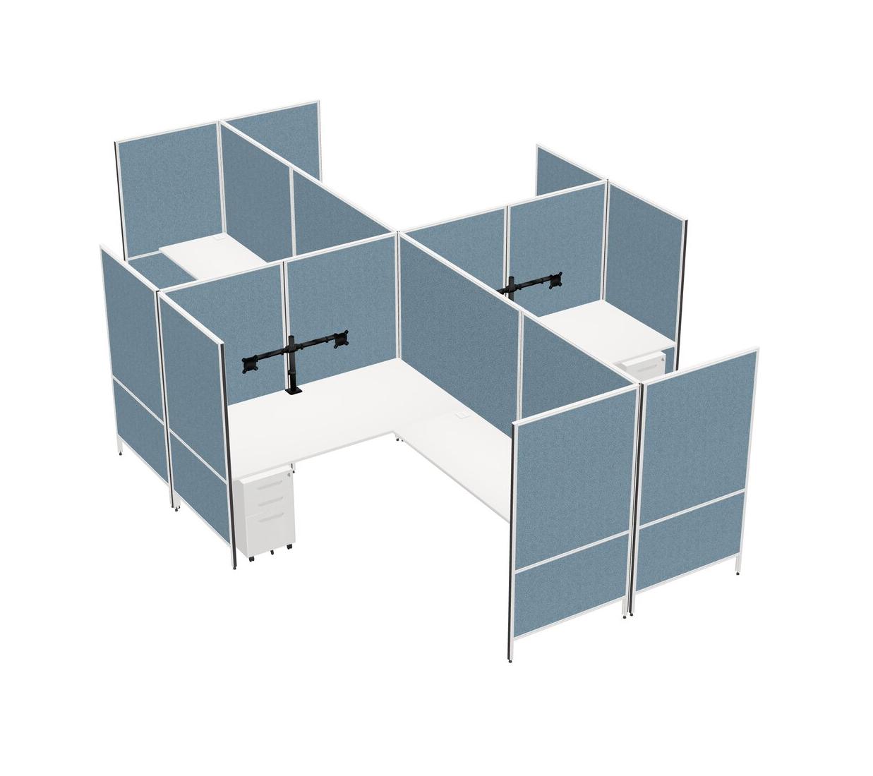 Système De Panneaux Modulaires Modernes Blancs En Forme De L + Tiroirs Mobiles En Métal + Bras Pour écran (double Bras)