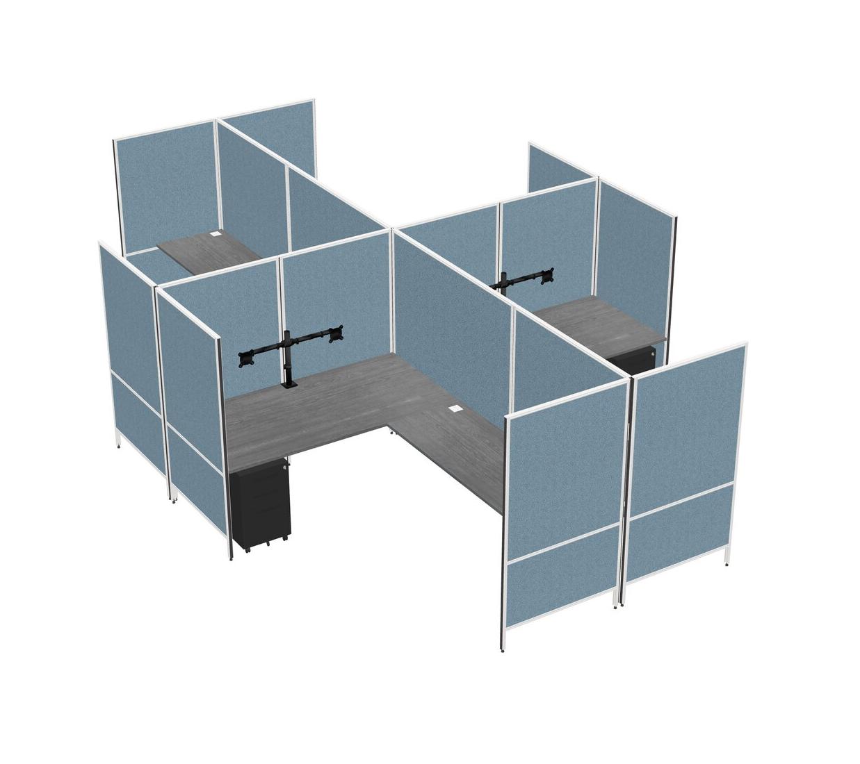Système De Panneaux Modulaires Modernes Gris En Forme De L + Tiroirs Mobiles En Métal + Bras Pour écran (double Bras)