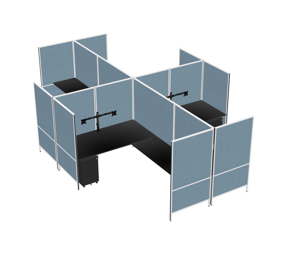 Système De Panneaux Modulaires Modernes Noirs En Forme De L + Tiroirs Mobiles En Métal + Bras Pour écran (double Bras)