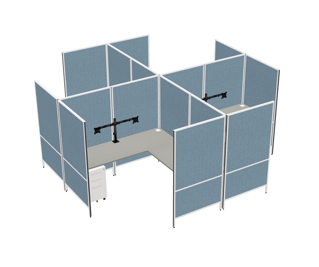 Système De Panneaux Modulaires Modernes En Forme De L Grey Shadows + Tiroirs Mobiles En Métal + Bras Pour écran (double Bras)