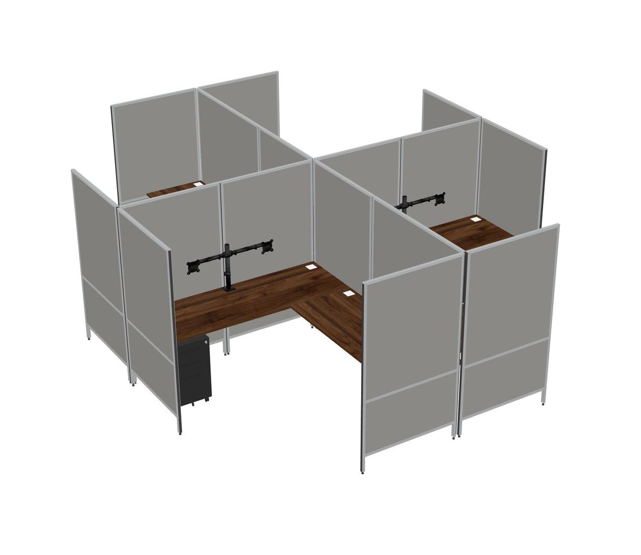 Système De Panneaux Modulaires Modernes En Forme De L Columbia En Noyer + Tiroirs Mobiles En Métal + Bras Pour écran (double Bras)