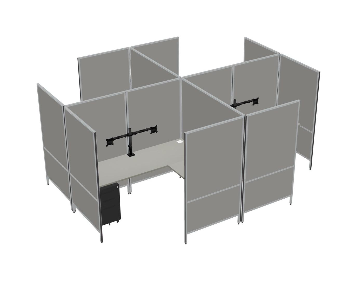 Système De Panneaux Modulaires Modernes En Forme De L Grey Shadows + Tiroirs Mobiles En Métal + Bras Pour écran (double Bras)